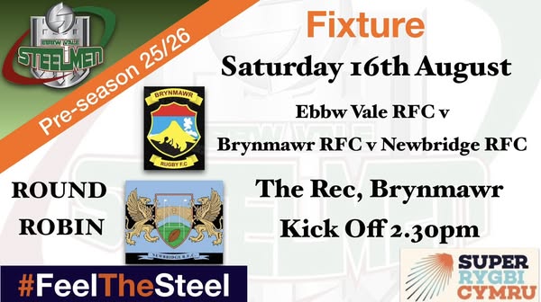 Ebbw Vale’s next game is at the Ciner glass community stadium against Bridgend RFC on Saturday 13th of December 2025, with kick off at 2:30pm.