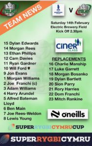 Jason Strange makes a number of changes to the squad that defeated Aberavon RFC in the last match. Jon Evans comes into the starting XV at scrum half. Ethan Phillips also returns with Cam Davies moving to inside centre. Morgan Rees starts on the wing with Dylan Edwards returning at full back