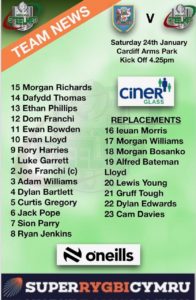 In their last match, the Steelmen beat Llandovery at Church Bank by 41 -14, and Jason Strange makes just one change from that team with Adam Williams coming into the starting XV. Joe Franchi will captain the squad with Dylan Edwards looking to make an impact from the bench.