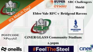 The Steelmen look to continue their unbeaten run when they return to action in Super Rygbi Cymru against Bridgend Ravens at the CiNER GLASS Community Stadium today. The SRC Challengers Shield will also be on the line as the Steelmen make their 6th defence of the shield this season. The Steelmen beat the Ravens 34 -17 at the Brewery Field in September.