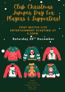 Reminder that today is Christmas Jumper Day for players and supporters. There will be live entertainment in the club after the game starting at 5.30pm.