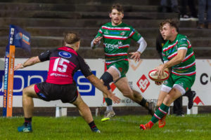 A take at the lineout inside the Steelmen’s half saw the forwards set up a driving maul. Just on the pitch, scrum half Buffery saw an opportunity and darted up the blind side. Drawing the last line of defence, the scrum half passed out to winger Thomas to speed over the line to score his second try of the game with ten minutes of the game left. Outside half Lloyd added the extras.